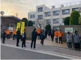 登校時のあいさつ運動。 元気よく、笑顔で、今日の始まりです。