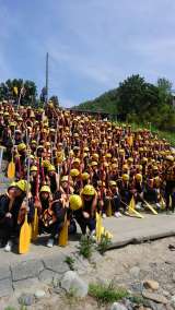 昼食を済ませ、村山健康スポーツセンターでの入村式です。これからみんなは民家ごとに...