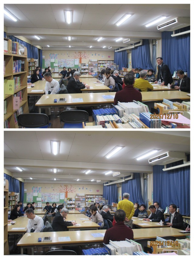 12月10日(水)午後7時30分~三校連絡協議会を図書室にて実施しました。鯰江地...