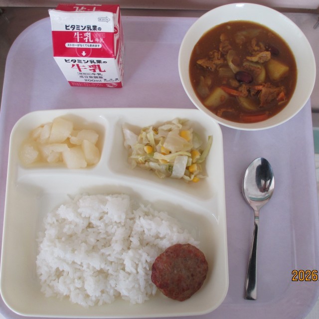 • 給食(豚肉と金時豆のカレーライス)