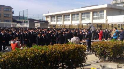 昨日、グランドコンディション不良で順延されていた全校集会が行われました。8時25分には整列が完了し、生徒会、各種専門の認証式が行われました。半期ですが、学校のため、クラスのために力を発揮してもらいたいと思います。