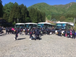 別れも名残りおいしいですが、次の活動場所へ出発です。バスが出る際、民泊の方が見送りをしてくれました。生徒たちも必死に手を振り最後のお別れをしました。少しの時間でしたが、色んな体験をさせてもらいました。この体験で一人一人が何か感じ学んでもらえたらと思います。