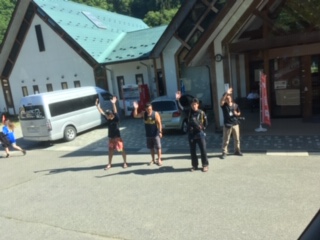 早いクラスは次の分宿先に移動をしているところです。とても優しく、そしてハイテンションなスタッフの方々がお見送りしてくれました。
