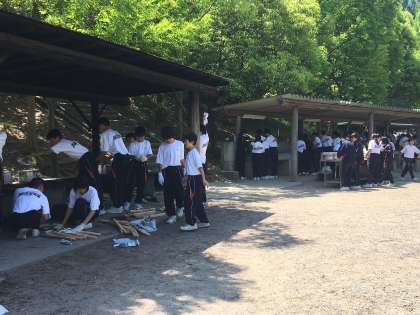 野外炊飯が始まりました。