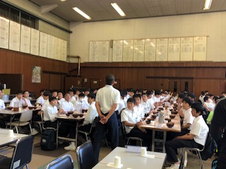 実行委員の「修学旅行最後の食事です!いただきます!」の合図で食べ始めました。運動後なので食が進んでいます。