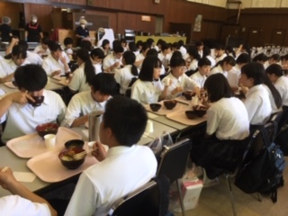 5組〜7組もしっかり食べました。お土産会場は2つ用意され、生徒達も種類の多さにどれを買うか悩んでる生徒も多かったです。いっぱいお土産を買い、バスに乗り、大阪に帰ります。