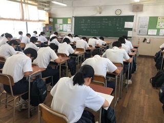 初日は国語、保健体育、技術家庭(3年のみ)のテストを受験しています。