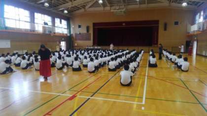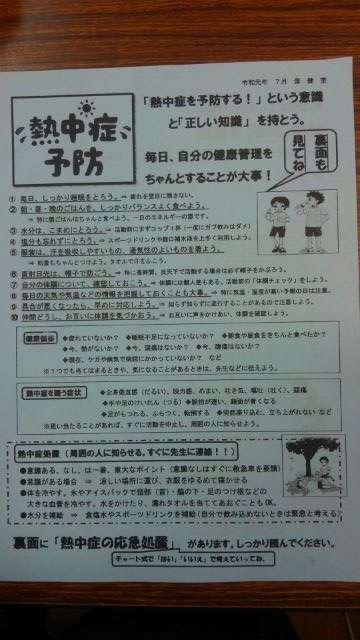 学年集会で熱中症予防を学年の保健委員会と共に開いていきます。今日は2年生でした。これから本格的な暑さに対する対策を個人においても意識して取り組むことが大切になります。