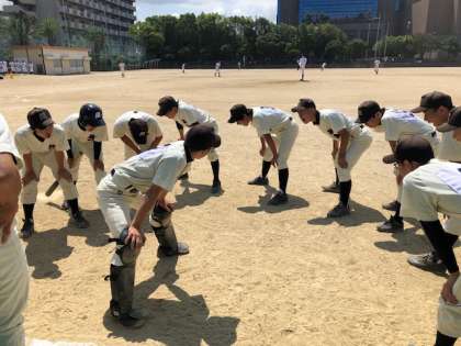 7月7日(日)、第59回大阪中学校軟式優勝野球大会の1回戦が忠岡グラウンドで行われ、夕陽丘中学校に勝利しました。