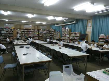 懇談期間中に図書室の蔵書点検を図書委員を中心に行っています。今日は、3年生が担当です。4717冊の点検が終わりました。