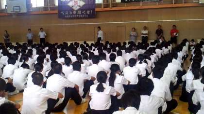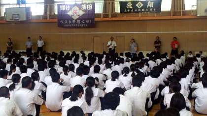 まず、ラグビー部をはじめとする、表彰をおこないました。(今までにも集会のたび、多数の表彰がありました)