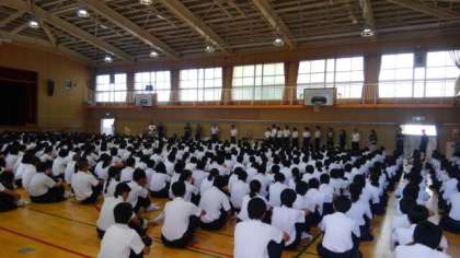 本日、2学期の始業式が行われました。夏休み中に行われた部活動の大会の表彰、学校長講話、生徒指導主事の森本先生からのお話がありました。夏休み中、大きな事故やけがは聞いていません。みんな、元気な顔で登校してくれました。