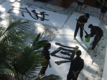 先週、土日でおこなわれました「大阪市立中学校総合文化祭」での書道部のパフォーマンスの様子です。 がんばりました!!
