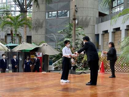 1枚目の写真は、総合文化祭のポスターに採用された生徒で、2枚目は大阪市生徒理科研究発表会で代表として選ばれた生徒です。これからもいい作品作成、研究を続けてください。