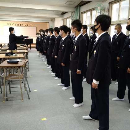 文化祭で合唱コンクールができなかったこともあり、音楽の授業で合唱の様子を撮影しています。マスクをしていますが素敵な歌声です。