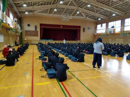 進路の先生から受験諸注意がありました。