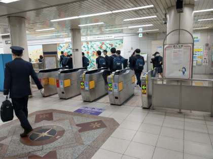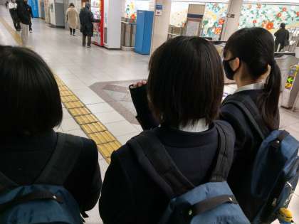 写真は横堤駅から受験に向かうところです。3年生の先生も要所に分かれて見送りました。
