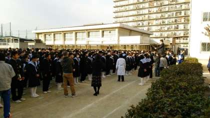 いつもの集会です 吹奏楽部・書写(国語科)・卓球部の表彰からです