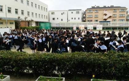 今、新入生のみなさんは、それぞれの教室に行き、就学通知書の回収と今日の予定の連絡を聞いております。