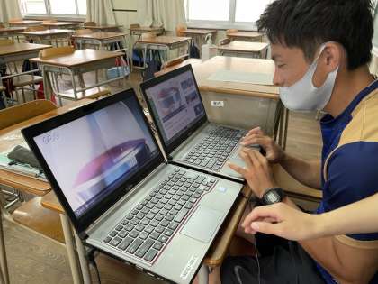 写真は、1年のオンライン授業の様子です。