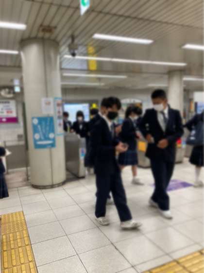 電車にのって、早い班はすでに最初の施設に到着しています。