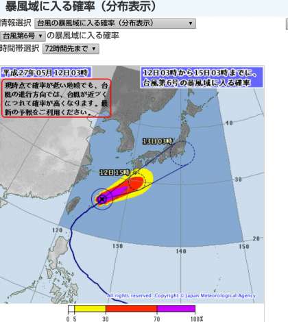 台風6号は、午後・夕方〜夜にかけて接近の可能性だそうです。