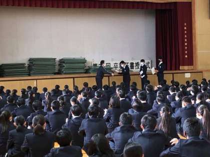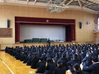 本日(11/12)の3年生学年集会は体育大会の学級旗の表彰と総文祭の美術部の表彰、新谷先生からのお話でした。