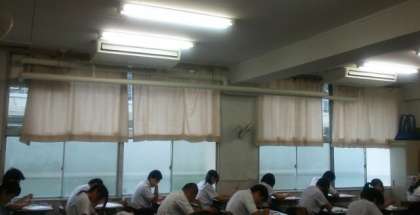 3年生は第2回実力、1・2年生は課題テストを実施中です。少し涼しくなったとはいえ、まだ蒸し暑さはあります。が、やっと、すべての教室にエアコンがはいり、その蒸し暑さも少しはましになっています。