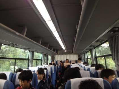 離村式も終わり、バスで移動中です。
