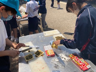 野外炊飯の様子です。