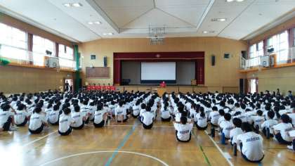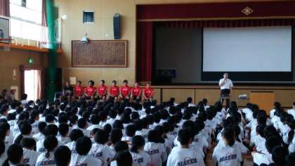 1・2年生は「NTTドコモレッドハリケーンズ」(ラグビー)の方に来ていただき、「トップアスリートによる夢授業」をうけています。