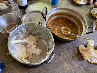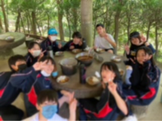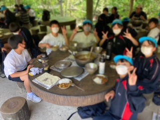 美味しいカレーが出来上がり、班ごとでいただきます!