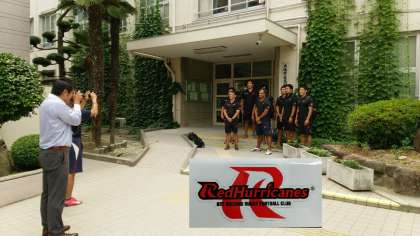 最後に、玄関で記念撮影です(学校もチームの方も!)