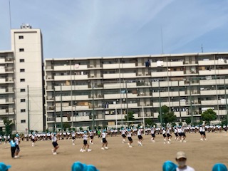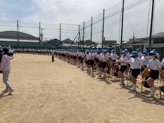 本日1、2限 体育大会の全体練習がありました。