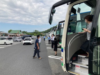 1台だけ急遽トイレ休憩を挟んだため、5台は紀ノ川SAに到着し、トイレ休憩をし、先ほど出発しました。遅れてる1台ももうすぐ紀ノ川に着きます。