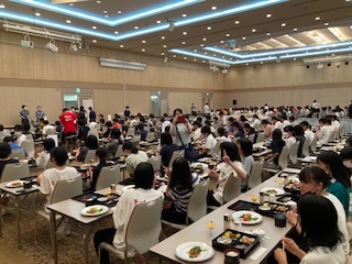 入浴、二日目のクラスレクの練習、お土産購入のローテーションで各クラス周り、全員で夕食です。お肉美味しい!!と感動の声も挙がりました。