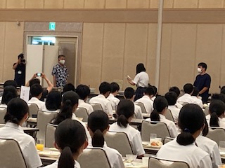 外での退館式が、雨雲が怪しいため、朝食の際に実施しました。