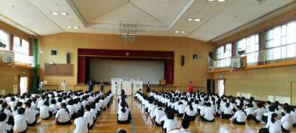 1年生の学年集会です 保健室からのお話です。