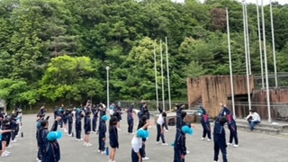 2日目 6時に起床し 6:20から朝のつどいでラジオ体操をしました。