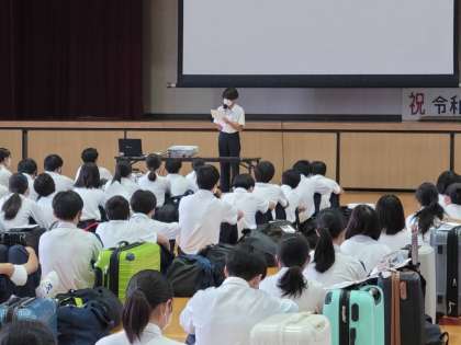 本日3.4限に、修学旅行に向けて事前指導を行いました。