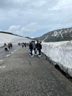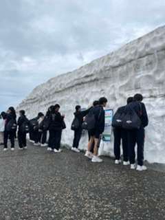 名所、雪の大谷に到着です。みんな雪をさわって楽しんでいます。