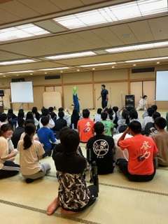 先生と生徒の漫才で盛り上がっています。