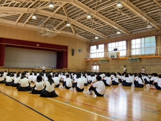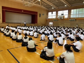 本日1限に体育館にて1年生の事前指導がありました。夏休みの過ごし方について沢山お話しがありました。充実した夏休みを送ってほしいです。