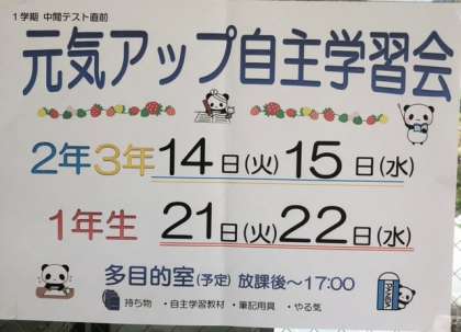 2・3年生は5月14日(火)と15日(水)の2日間、1年生は、5月21日(火)と22日(水)に実施します。