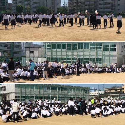 その後、校長講話を行い、災害時の避難地域ごとに分かれる訓練を行いました。