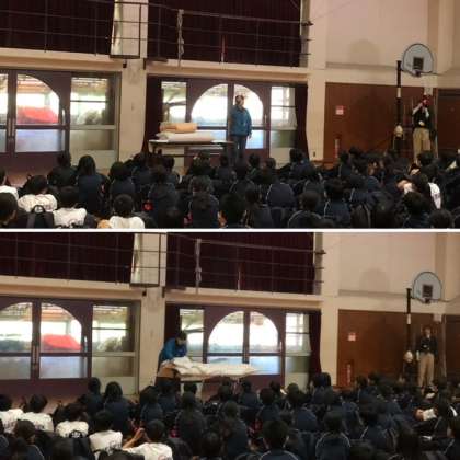実行委員のあいさつ、職員の方からのあいさつの後、寝具の使い方の説明を受けました。