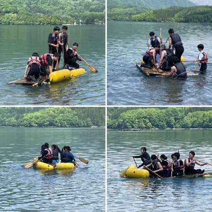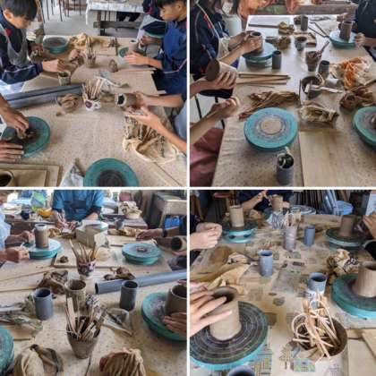 陶芸(上)、イカダ作り(下)のようすです。