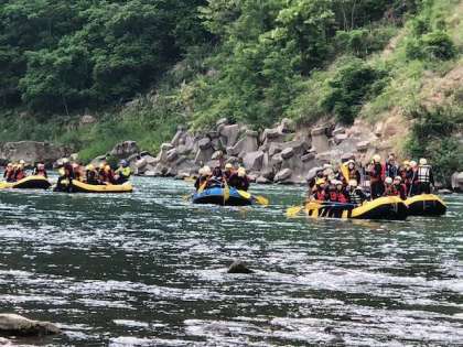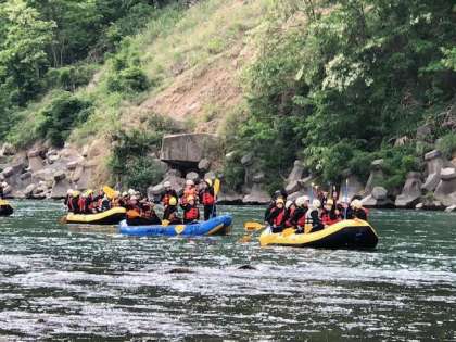カメラ屋さんの前で各艇ポーズをとっての記念写真です。