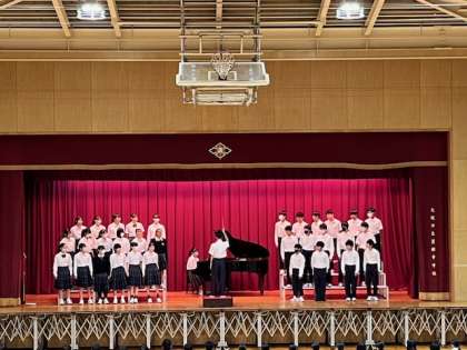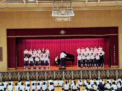 来週の合唱コンクールに向けて、体育館で流れの確認を行い、実際に歌ってみました。