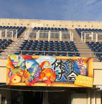 美術部が作成した力作です。 色合いも鮮やかで、鶴見球技場内に美しく映えていました。